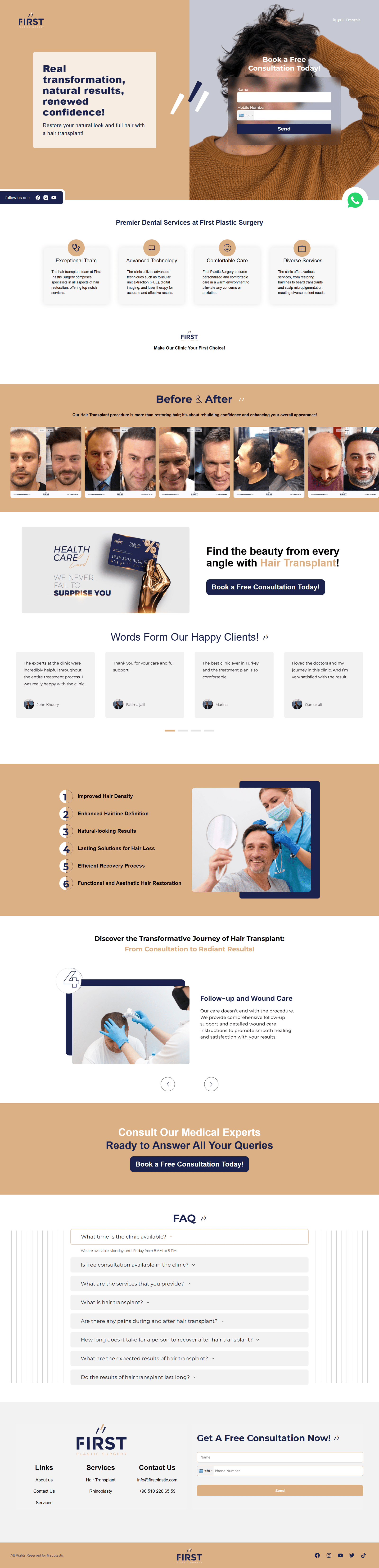 WordPress landing page designed for a clinic specializing in dental care and plastic surgery for med...