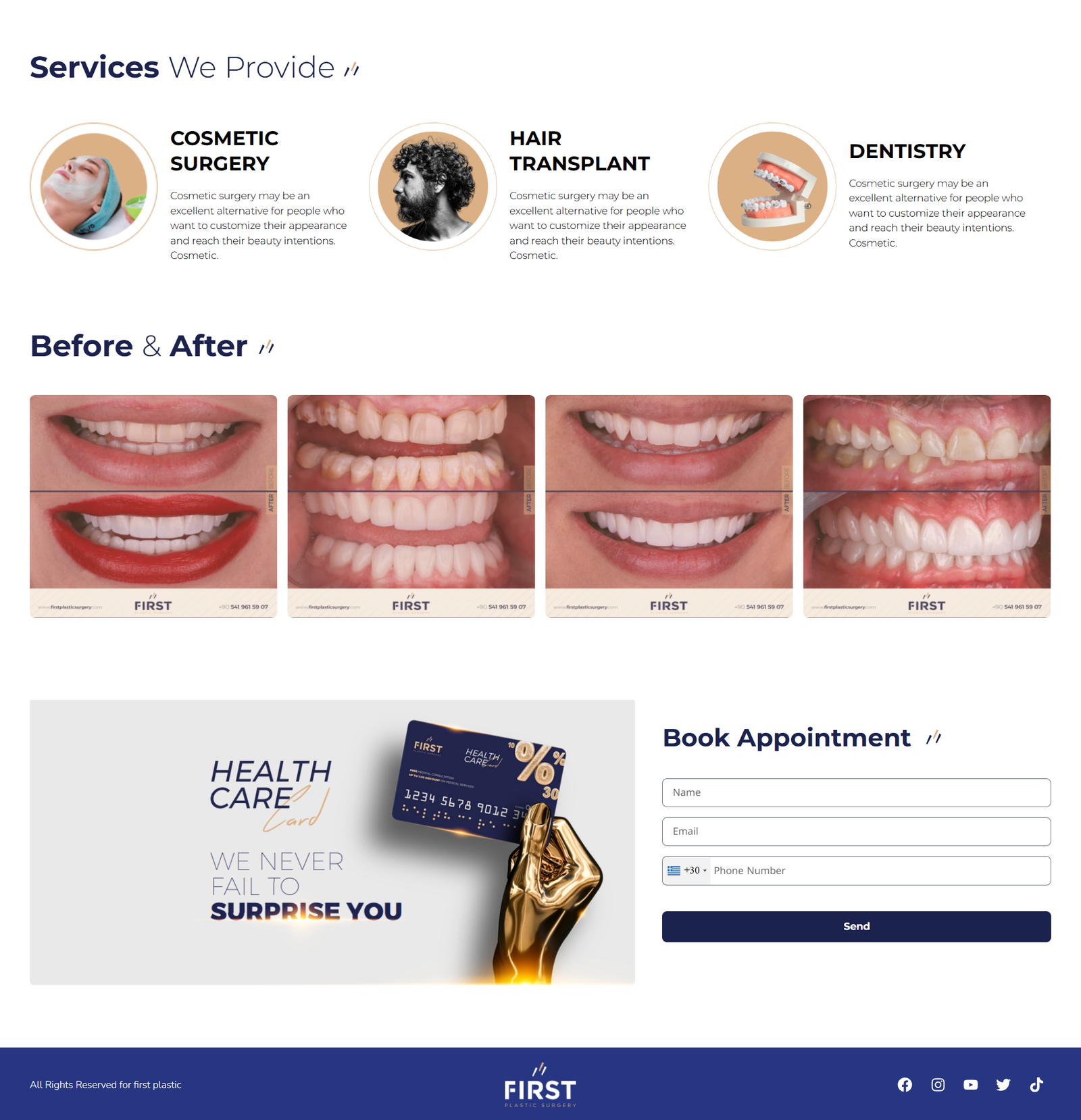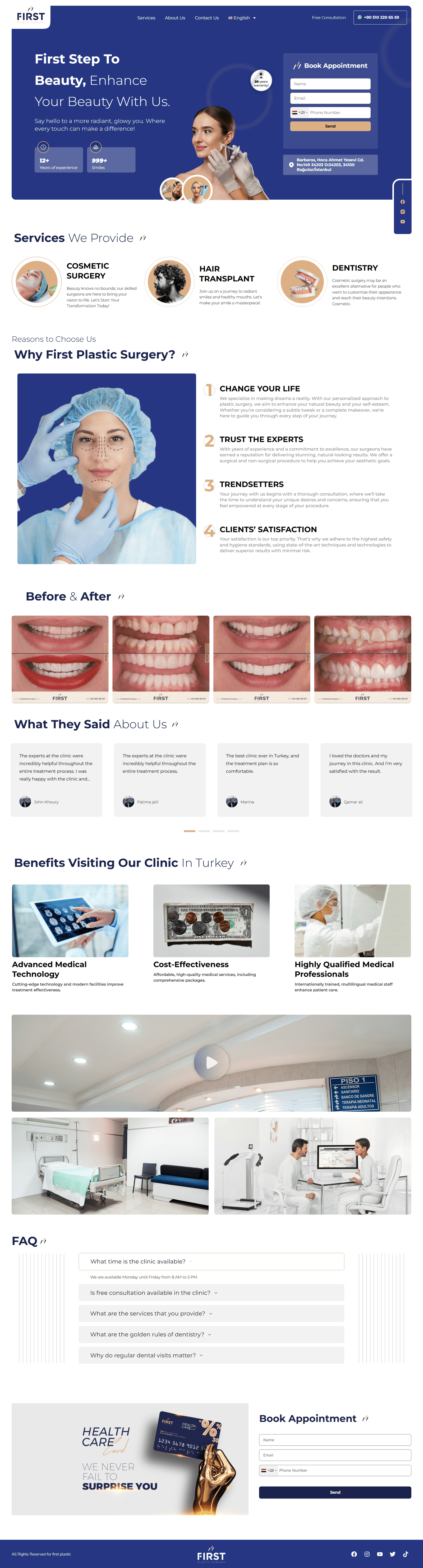 WordPress landing page designed for a clinic specializing in dental care and plastic surgery for med...
